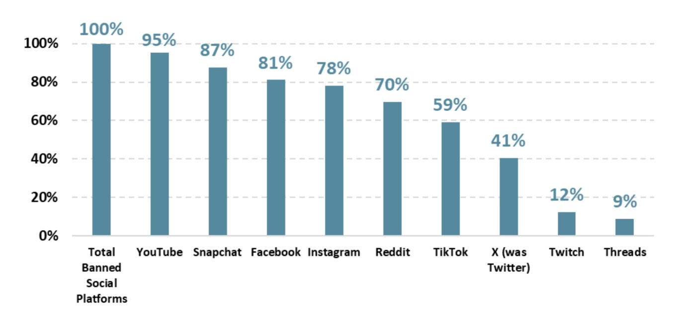 З 10 грудня 2025 року заборона поширюється на десять платформ: YouTube, X, Facebook, Instagram, TikTok, Snapchat, Reddit, Twitch, Threads і Kick. Однак за потреби його буде поширено на інші платформи. Міністр Уеллс зробив позиція уряду дуже чітко.